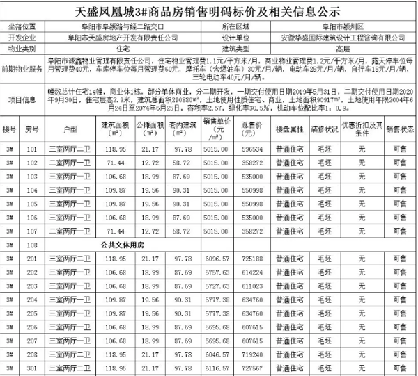 阜阳房价播报:天盛凤凰城住宅备案均价5900元/㎡