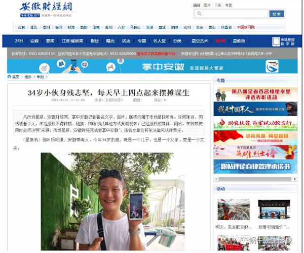 此前笔者曾报道过,阜阳34岁小伙身残志坚,每天早上四点起来摆摊谋生。