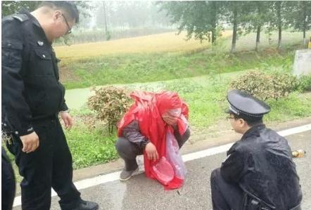 5月21日下午17时许,界首市公安局新华派出所值班民警陈振威、付杰在辖区内巡逻,当巡逻到界光路吕寨路段的时候,发现汪庄行政村的村干部尹从民、郭士贤站在路边,有一个穿着一件红色雨衣的男子躺在路上,旁边还停着一辆歪倒在路边的电瓶车。