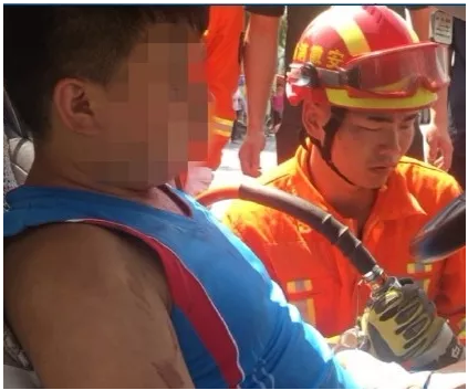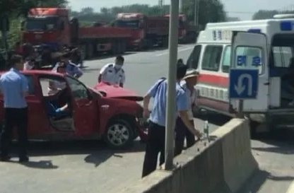 今天12时54分左右,阜阳市颍州区与临泉交界处一辆三轮车与轿车发生事故。接到报警后,辖区消防队立即出动警力赶往出发现场。根据现场情况,消防官兵只见车内坐着一人,满脸是血的男人,医生正在给输水,根据现场